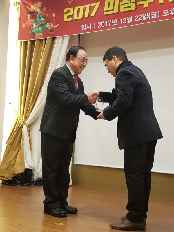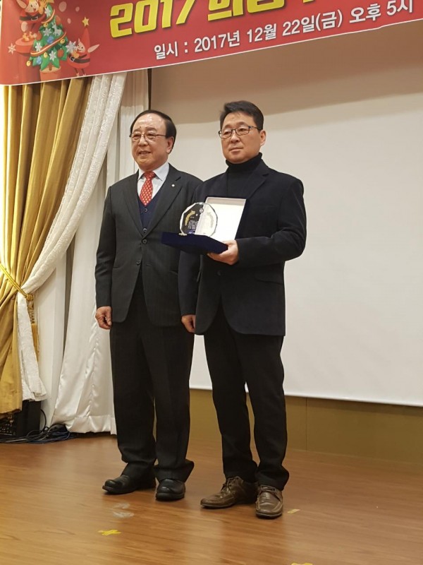 대표이사님께서 사정상 참석하지 못하시어 봉사회 박기춘 회장님께서 대리 수상하셨습니다.