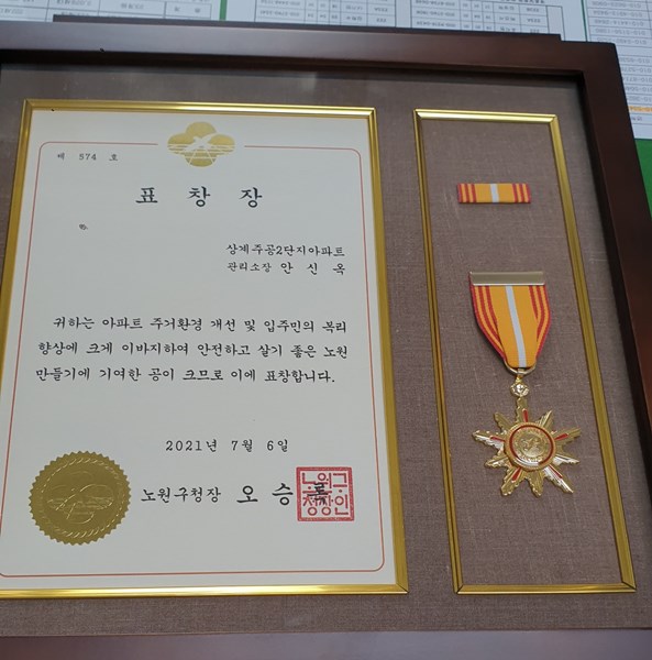 ♥ 주거복지 향상에 기여하신 상계주공2단지 안신옥소장님께서 노원구청장 표창을 수상하셨습니다.♥